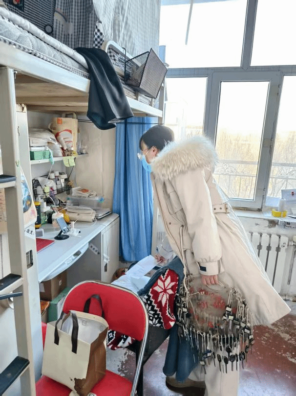 另一组由学院党委副书记陈云带领全体辅导员,深入学生宿舍区域进行安全检查。检查组重点排查了宿舍内是否存放或使用违规电器、是否存在私拉乱接电线及人走未断电等情况,并向假期留校学生强调了假期宿舍安全注意事项,提醒同学们在返程途中要增强安全意识,确保人身与财产安全。