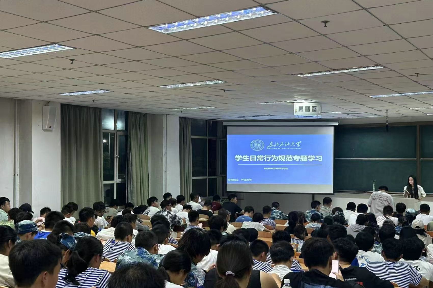 通过新生系列教育活动,同学们纷纷表示,要牢记“艰苦创业,严谨治学”的校训和“严谨、朴实、勤奋、创新”的校风,立大志、明大德、成大才、担大任,在东油书写人生新篇章。