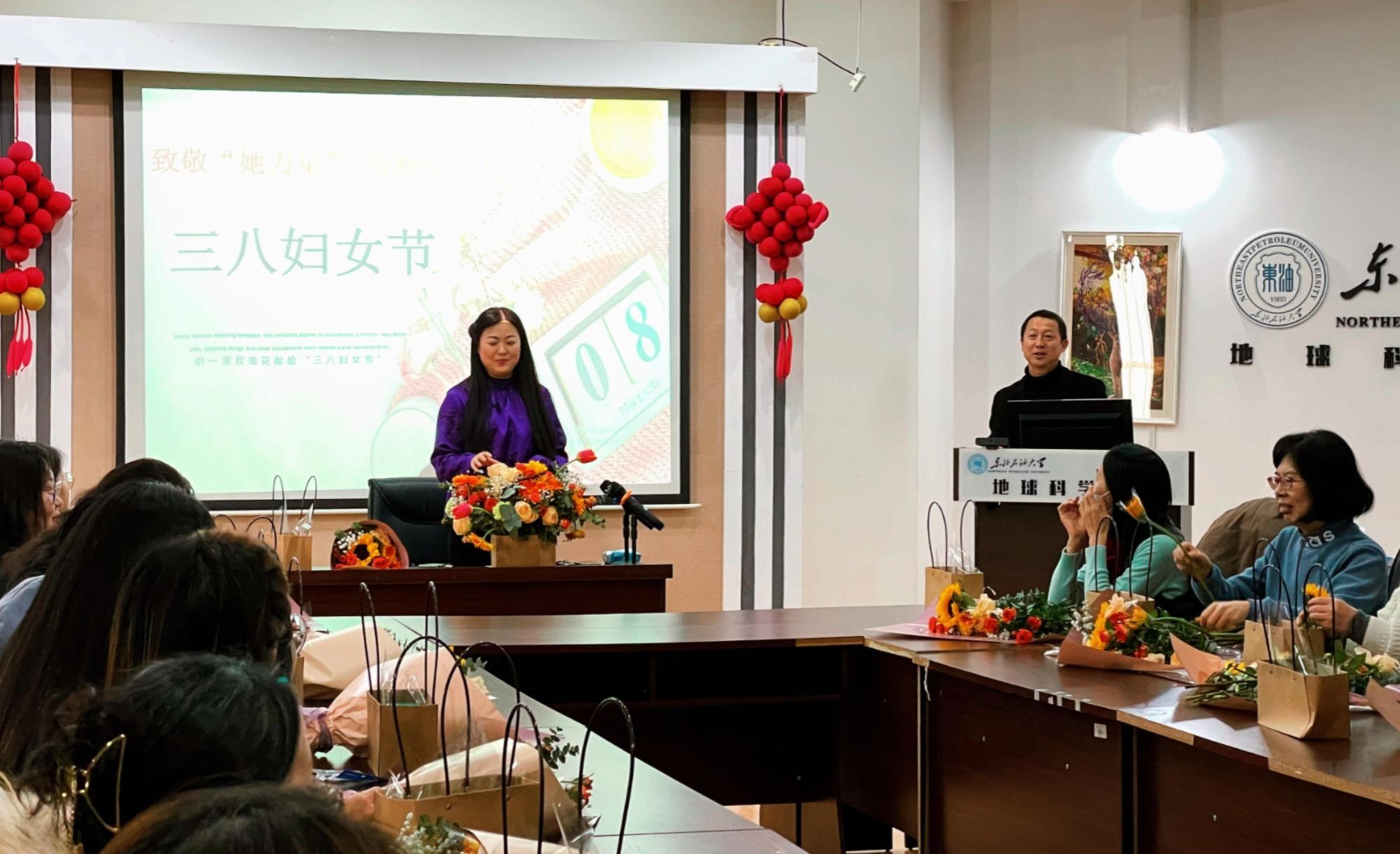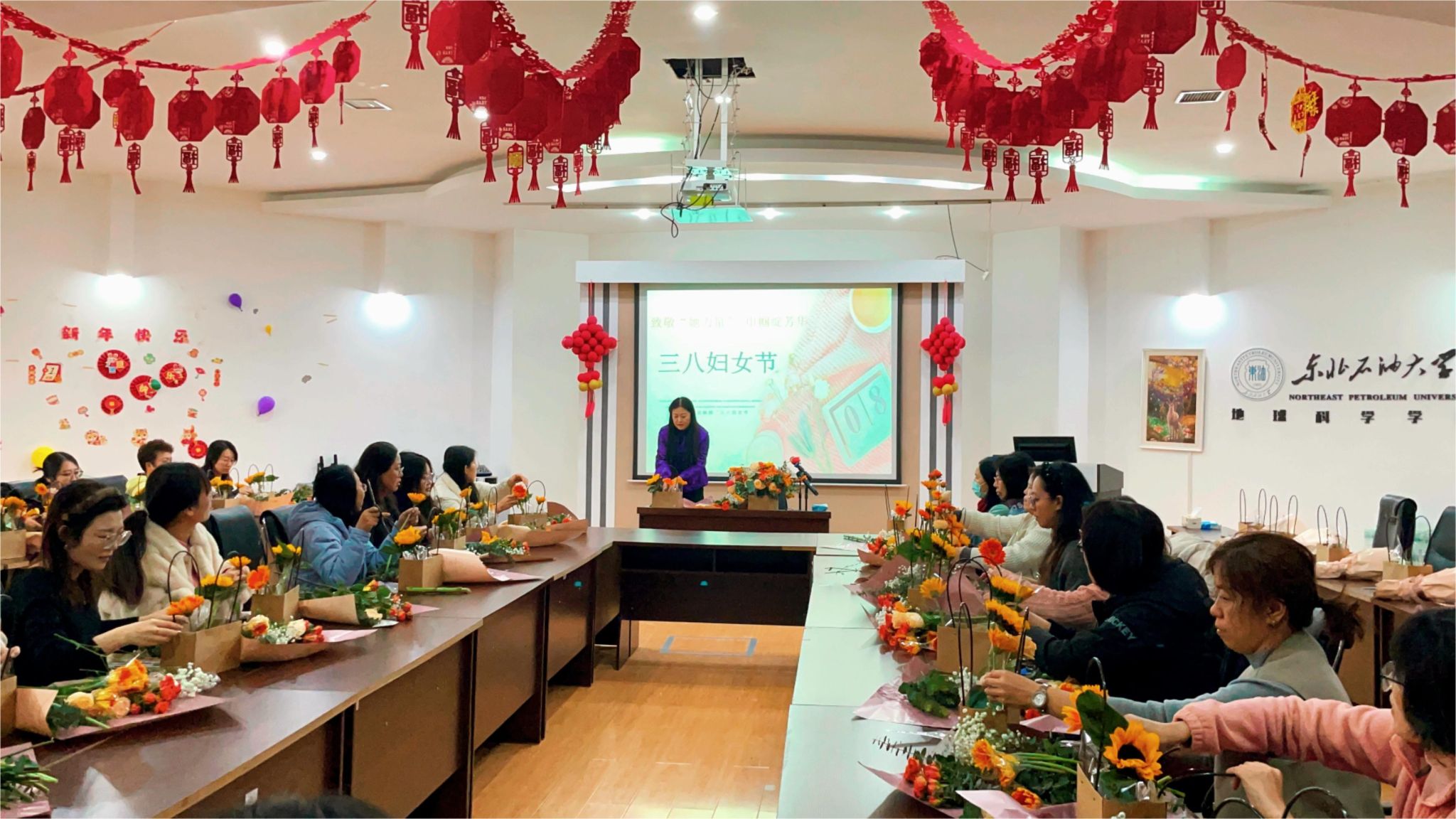 活动伊始,艺术学院董万多教授从色彩理论入手,引导女教师们发现自身独特的色彩优势,深入浅出地讲解了色彩搭配在日常生活与工作场景中的巧妙运用,还鼓励女教师将对色彩的感知运用到日常审美和生活创作中,感受色彩的艺术魅力。