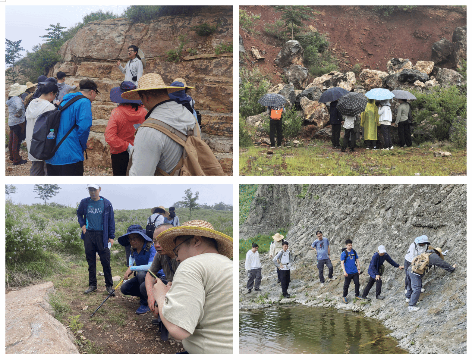 仪式结束后,师生即刻奔赴亮甲山、查庄、小北山等典型区域开展实习。教师们全程言传身教,野外现场与室内研讨结合为学生答疑解惑;学生传承大庆精神、铁人精神,不惧酷暑风雨,在地质观测、标本采集等任务中锤炼意志、精进技能。