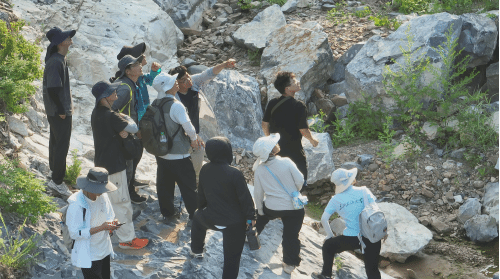 实习第二天参加联合实习的全体师生在石湖谷开展了野外观察描述、分析与讨论,该路线为我校新开辟的一条野外线路,野外出露众多沉积和构造现象,师生们沿路观察典型地质现象并开展集体讨论,教师们还探讨了如何将最新的研究成果融入教学,提升学生实习质量与科研训练水平。野外研讨进一步巩固并拓展了学生们的地球科学理论知识,全面提升了露头分析与综合研判能力。