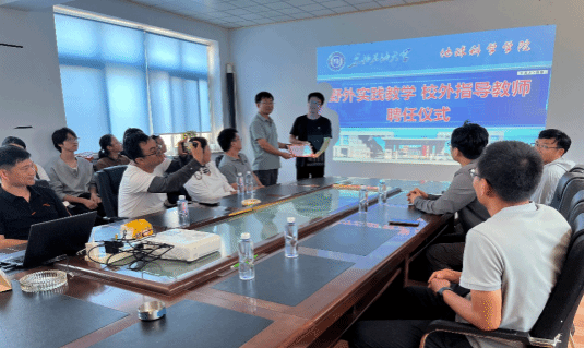联合实习期间,两校共赴凝聚矿业公司进行参观交流,邀请总经理赵亮为师生们进行了矿山选矿和开拓方法方面的讲座,学生进行了矿山安全培训并进入平硐察看矿硐地下空间利用情况。在公司现场,我校开展了野外地质教学校外指导教师聘任仪式,地科院副院长吴海光老师为赵亮经理颁发了校外实践指导教师聘任证书,同时我校实习队的柳成志老师为师生们讲解了矽卡岩的成因和控矿作用。借此机会,开展的兴城野外地质实习双导师制落地实践过程中,校内教师主导地质理论教学与基础技能训练,企业导师聚焦技术应用与行业实践,构建了“理论—实践—应用”的产教融合培养链条。