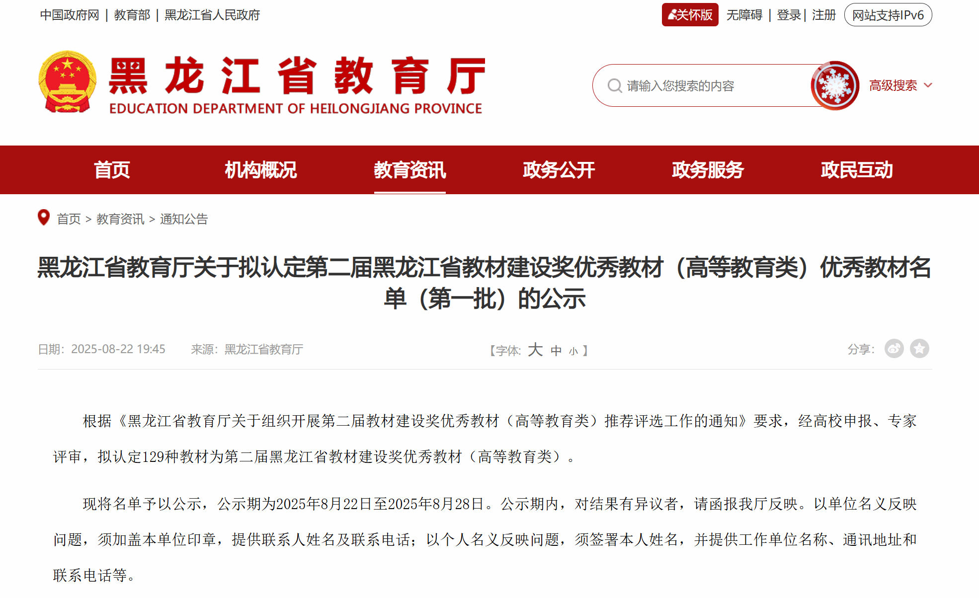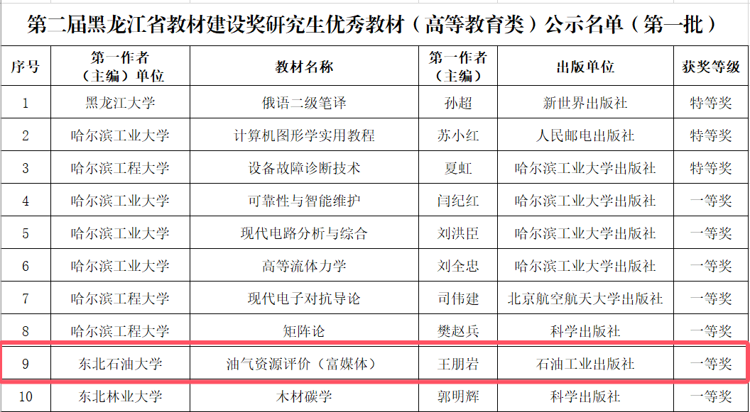 近日,黑龙江省教育厅发布了《关于拟认定第二届黑龙江省教材建设奖优秀教材(高等教育类)名单(第一批)的公示》,经各高校申报、专家严格评审,全省共评选出30部获奖研究生优秀教材(其中特等奖3部、一等奖10部、二等奖17部),Ky开元有1部教材荣获省级研究生优秀教材一等奖。