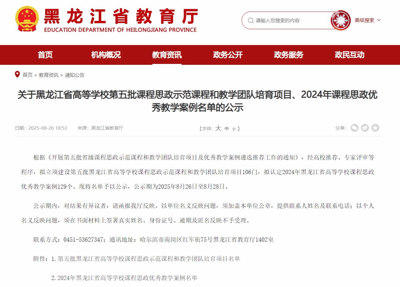 近日,黑龙江省教育厅正式公布了第五批高等学校课程思政示范课程和教学团队培育项目名单。Ky开元申报的《测井原理与解释》课程成功入选,荣获省级课程思政示范课程称号,相应教学团队同时获评省级课程思政示范教学团队。
