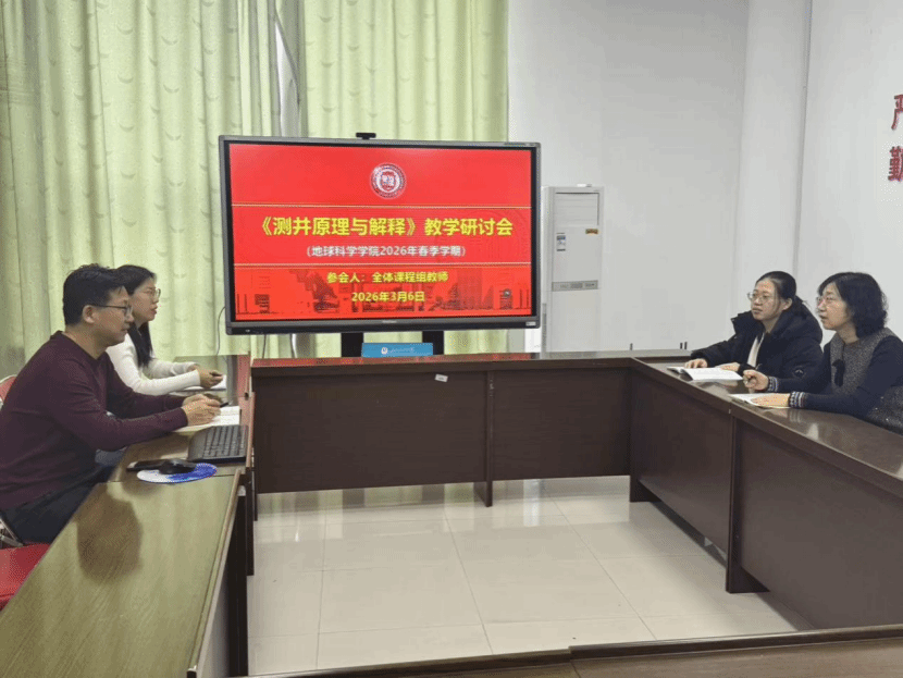 2026年3月6日,《测井原理与解释》课程教学团队在地科馆503开展了教学研讨活动。会议由于英华主持,课程组教师张庆国、姜艳娇、郭志华参加了线下会议,袁红旗、平贵东参加了线上会议。