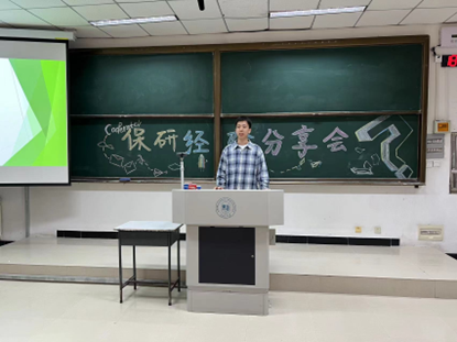 第二位为大家分享经验的是来自资源勘查技术与工程20-1班的林志远同学,他以优异的成绩成功保研到Ky开元集团。林志远在刘兴政分享的经验的基础上,又结合自己的保研经验,为在场的同学们补充了一些保研方面要注意的细节以及保研到哪个学校对我们所学专业更有优势。