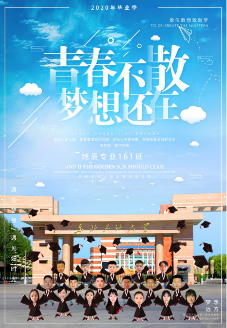 特殊时期,我们无法齐聚一堂,但我们有着相同的愿景,这个毕业季怎能少了毕业照。地质学专业贯彻以学生为中心的的工作宗旨,用特别的爱献给特殊的毕业季,为16级毕业生设计了云毕业照,最大程度弥补学生不能集体拍照的遗憾。虽然我们身处各地,但我们对即将远行学子的不舍与牵挂没有变,祝毕业的学子们此去繁华似锦,归来仍是少年。