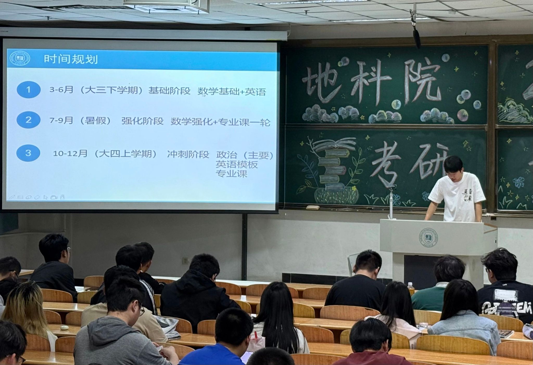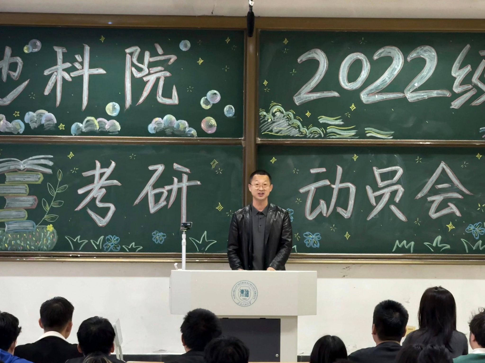 最后,辅导员李海悦立足学生成长陪伴者的角色,结合自身考研经历,从备考策略到心理调适层层剖析,用温暖真挚的话语为同学们注入前行力量。