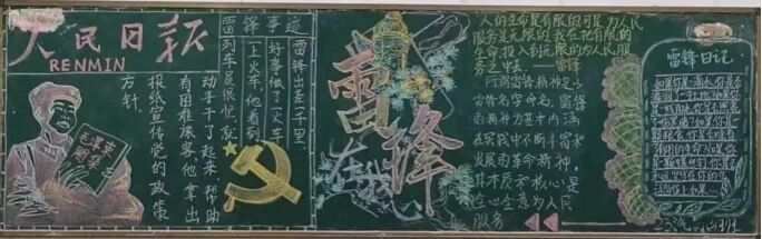 活动期间,各班学生积极参与,他们以真情作涂料,以敬佩为笔,把对雷锋的崇敬和怀念之情深深融入作品中,同学们纷纷开动脑筋,选编内容,设计版头、文字排版、绘制插图……黑板报主题鲜明,介绍雷锋生平、宣传雷锋感人事迹、收录雷锋名言、再现雷锋日记、宣传班级中的好人好事,其形式多样,内容丰富。各班充分利用黑板报这块宣传阵地,让同学们更加充分地了解雷锋,学习雷锋,传承雷锋精神。