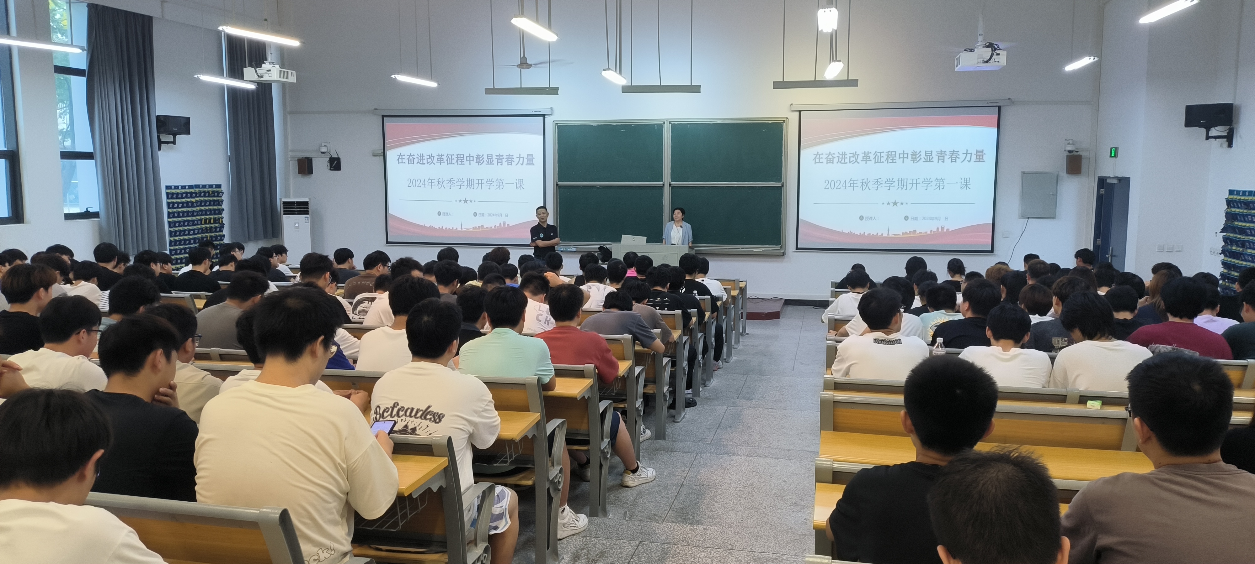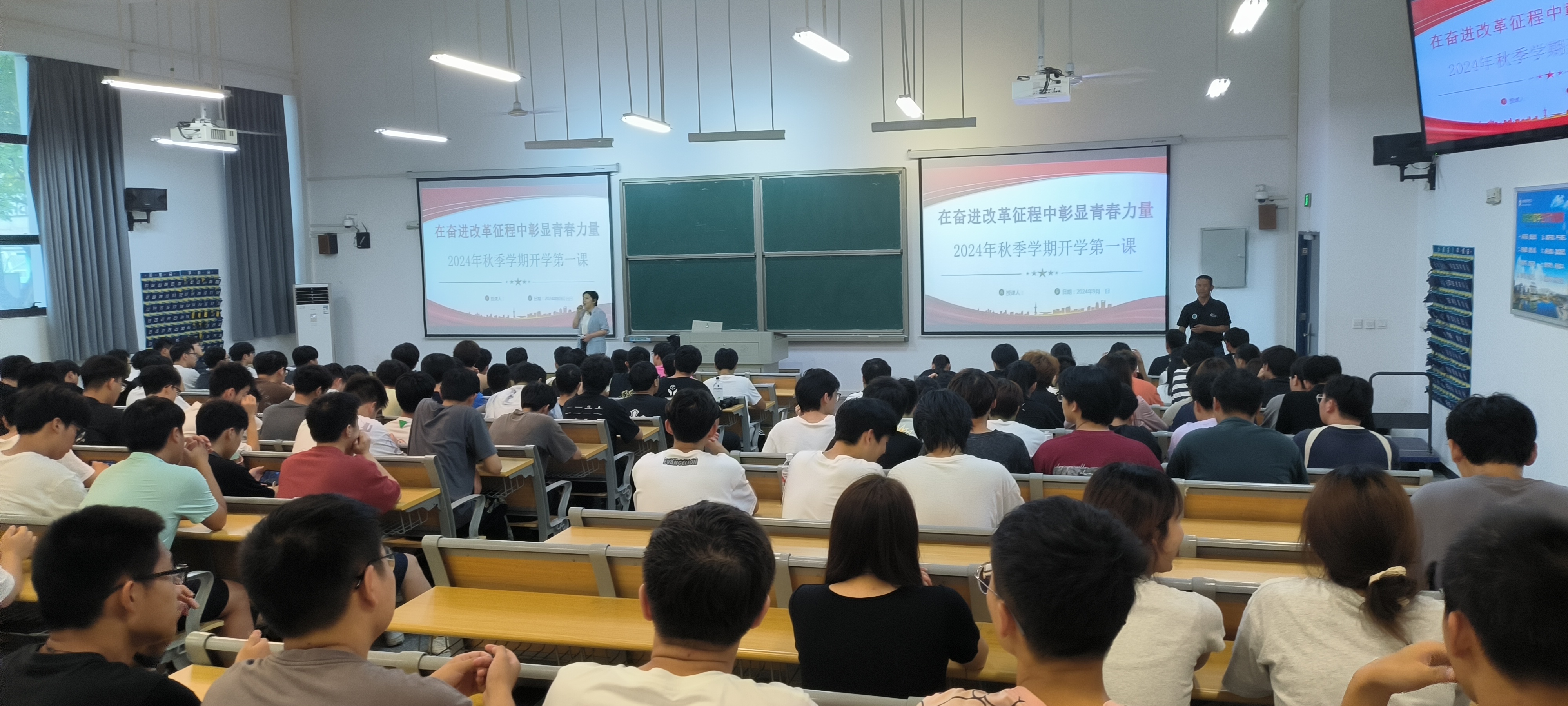 魏华部长首先以2024巴黎奥运会中出现合肥出口的新能源汽车为切入点,生动地阐述了新时代中国青年所面临的优越环境和历史机遇。她指出,当代中国青年生逢盛世,拥有更高质量的发展条件和更多的人生出彩机会,同时也肩负着更加重要的责任和使命要珍惜机遇,作为汽车学子要精进专业,勇于创新,为推动我国新能源汽车产业发展贡献力量。在讲座中,魏部长从“深入贯彻党的二十届三中全会精神”、“改革有召唤,青年有担当”以及“立足新起点,开启新篇章”三个方面进行了深入讲解。她强调,在中华民族从站起来、富起来到强起来的伟大历史跨越中,中国青年始终接续奋斗、勇担使命,创造出无愧于时代的辉煌成就。她希望新生们能够以史为鉴,牢记使命,勇攀科技高峰,为全面建设社会主义现代化国家贡献自己的力量。