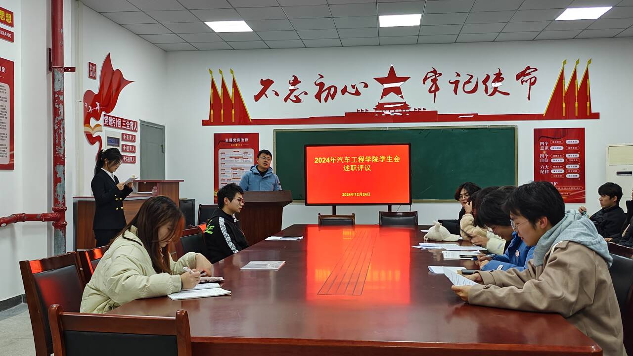 为进一步加强学生骨干队伍建设,推动学生会管理工作科学化、规范化,提高学生会骨干工作积极性和责任意识,搭建沟通交流桥梁,betway西汉姆联官网于12月25日下午6点在汽车楼405会议室召开2024-2025学年第一学期学生会干部述职评议会。我院团支部书记毛炜、学生会主席严承政及各部门负责人参加评议会,汇心湖校区主席团及各部门负责人线上参加会议。