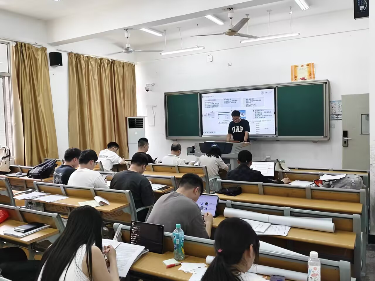 安徽工业大学二级学院院系领导到答辩现场指导,并与毕业班级学生进行合影留念。