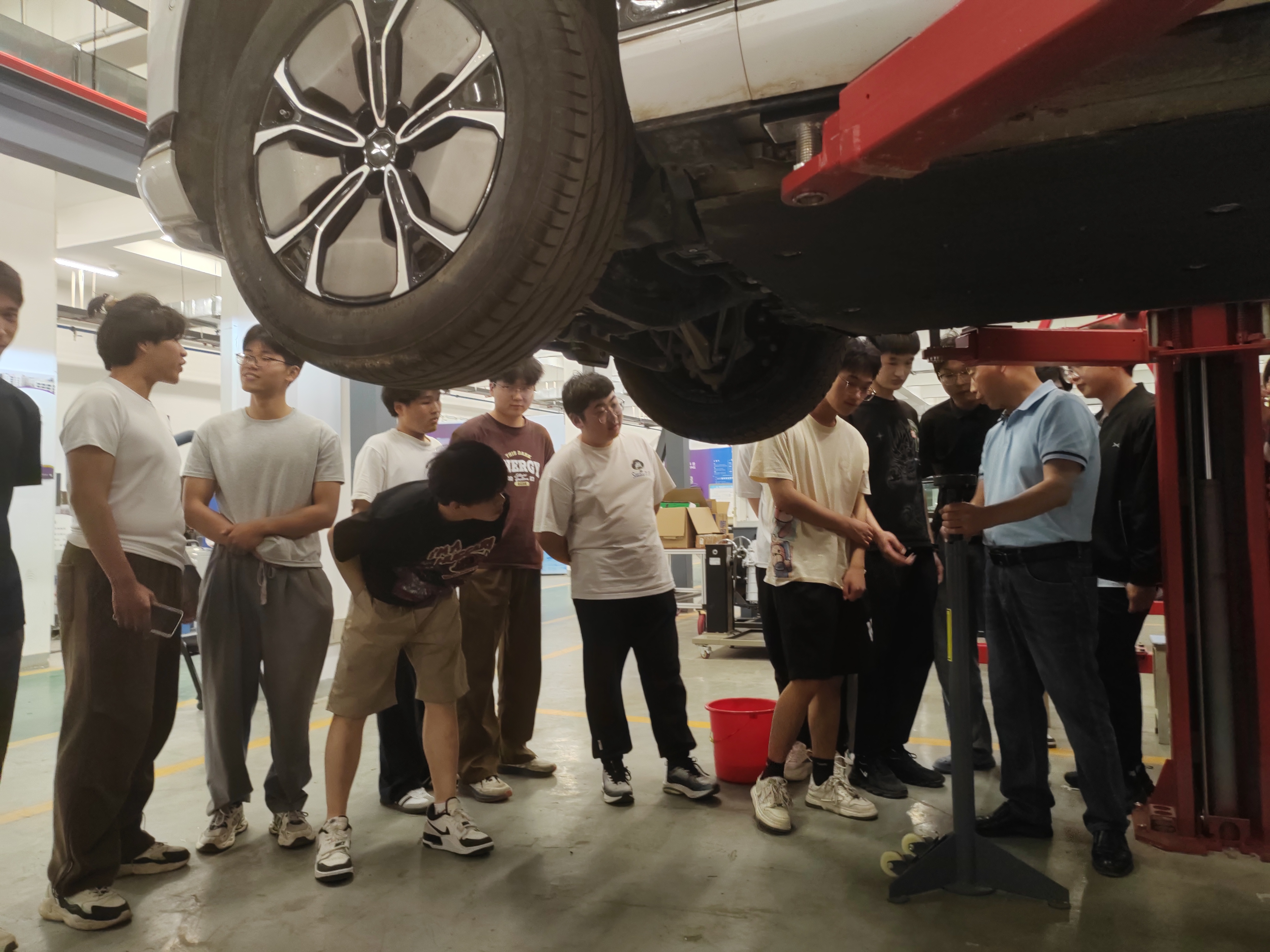 考核现场,企业技术专家以高度的专业性和严谨性,对订单班学生展开了全面且严格的评估。此次考核划分为服务与机电两大核心方向,每个方向均采用理论与实操相结合的“双轨”考核模式。在服务方向,聚焦学生职业素养与业务能力的深度培养,从产品知识、服务流程、商务礼仪等10个模块、32个任务点入手,像层层剥茧般,对学生的服务意识与专业能力进行深度考查;机电方向则以技术实操为核心,围绕车辆功能操作、系统使用、车辆标定、检查与更换等6个模块、40个任务点,全方位检验学生的技术水平与实践能力,确保精准评估每一位学生是否达到行业岗位的严苛要求。