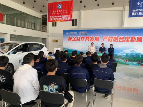 4月7日下午,安徽合廉创汽车销售有限公司郑盼港经理一行应邀来到betway西汉姆联官网22汽营转段班进行课堂实践教学活动。我院院长解云、党总支副书记刘靖、副院长伍东升来到课堂现场进行旁听。