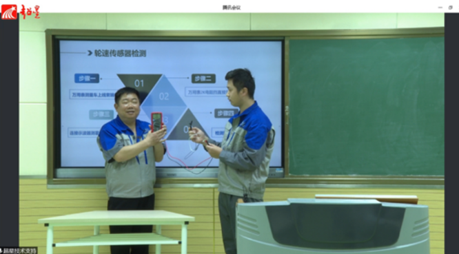 彭诚团队由“老中青”三代汽车人组成,其中,彭诚负责参赛作品实施方案编制与现场汇报、顾友民负责项目策划并担任现场主辩、姜之平与姚志鹏负责课堂教学展示。他们的参赛作品是“汽车行驶安全之钥-ABS防抱死系统检测”。