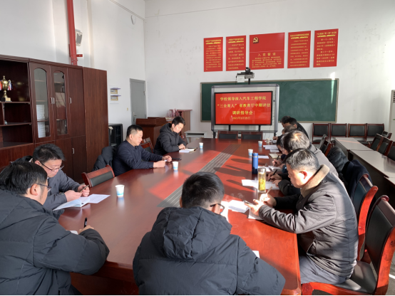 元月19日下午,学校党委副书记胡其云、校宣传部朱鹏飞、徐亚飞等一行深入我院,在汽车楼四楼会议室听取我院“三全育人”综合改革试点院系项目建设中期评估准备情况汇报,我院“三全育人”项目建设工作组成员参加会议。