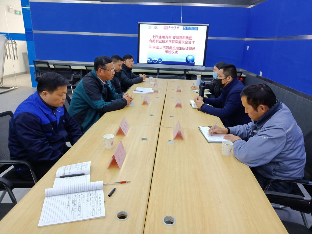 2020年12月25日下午,安徽易和集团人事经理罗曼一行3人,专程来到betway西汉姆联官网,在上汽通用ASEP实训中心,betway西汉姆联官网党总支书记高恒平、伍东升副院长、江滔主任和张志刚主任与罗曼一行进行了座谈、沟通和交换意见。学校方面和企业方面达成共识:通过第三批现代学徒制高质量验收,我们要把深度校企合作ASEP项目做实、做强,把学生培养成工匠型的人才,既要培养学生的技能,又要留得住学生。双方就如何开展校企深度合作,加入合肥职教集团,给学生提供一个良好的实习就业环境提高学生实习的待遇、关心学生生活以及学生的管理等方面,进行了激烈又融洽的讨论,对校企合作中存在的专家进校、教师进店、学生待遇和学生留置率较低等问题,均提出了逐步解决的意向和办法。