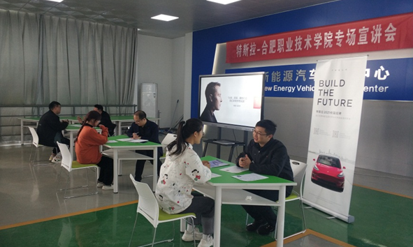 会后,在参观完学院实验实训场地后,特斯拉中国一行在betway西汉姆联官网新能源汽车实训中心进行了现场宣讲,对特斯拉的发展历程、管理理念以及薪酬待遇进行了详细介绍,对现场41名即将毕业的2018级新能源汽车技术专业学生进行了一对一的现场招聘,招聘会结束后特斯拉中国一行对我院培养的学生专业技术水平和职业素养给予了高度评价和认可。