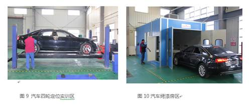 2、汽车检测、维修、保养实训区域 内设整车理实一体化实训区、轮胎动平衡实训区、四轮定位实训区、汽车烤漆房区、汽车二级维护保养、检测及故障诊断实训区以及理实一体化多媒体教室一间,同时,还配置了奥迪A4、奥迪A6、帕萨特、卡罗拉、迈腾等一些中高档品牌整车。