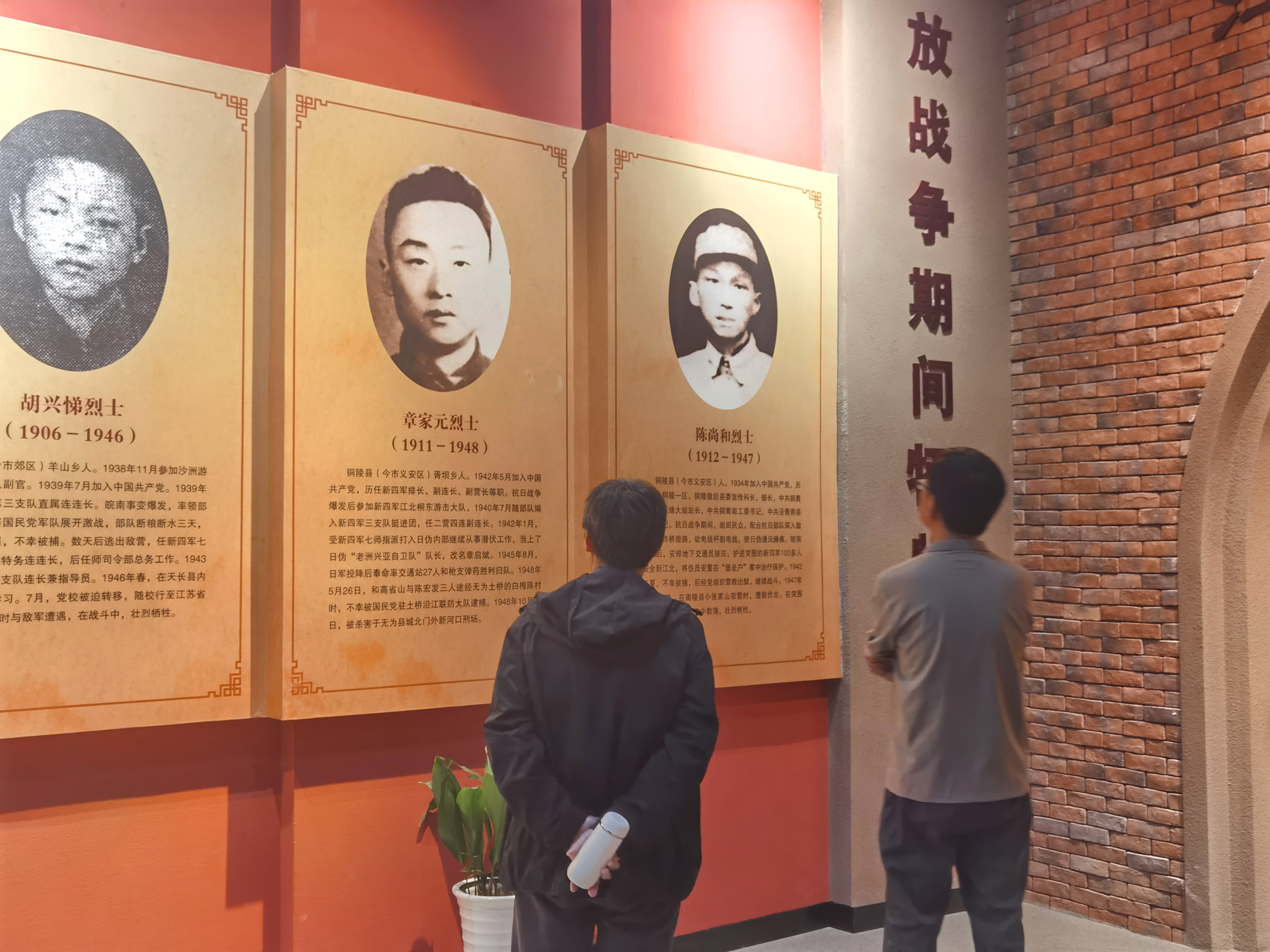 纪念馆内,一桩桩战斗史料无声地诉说着一段又一段峥嵘岁月,一幅幅烈士画像激昂地描绘着一代又一代前仆后继的画面。看着画像上那一串串短暂却辉煌的生卒年数字,参观成员不禁动容。