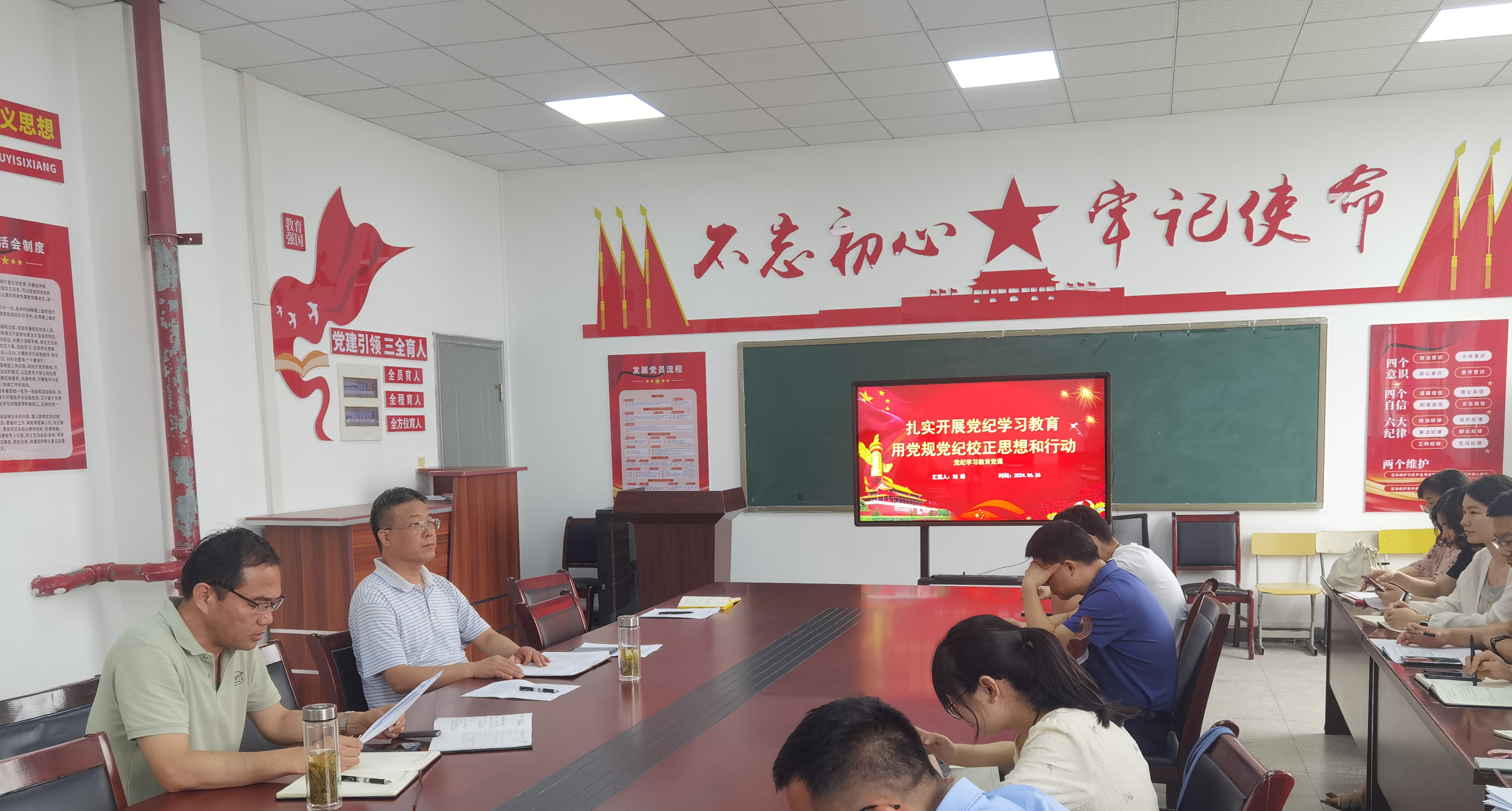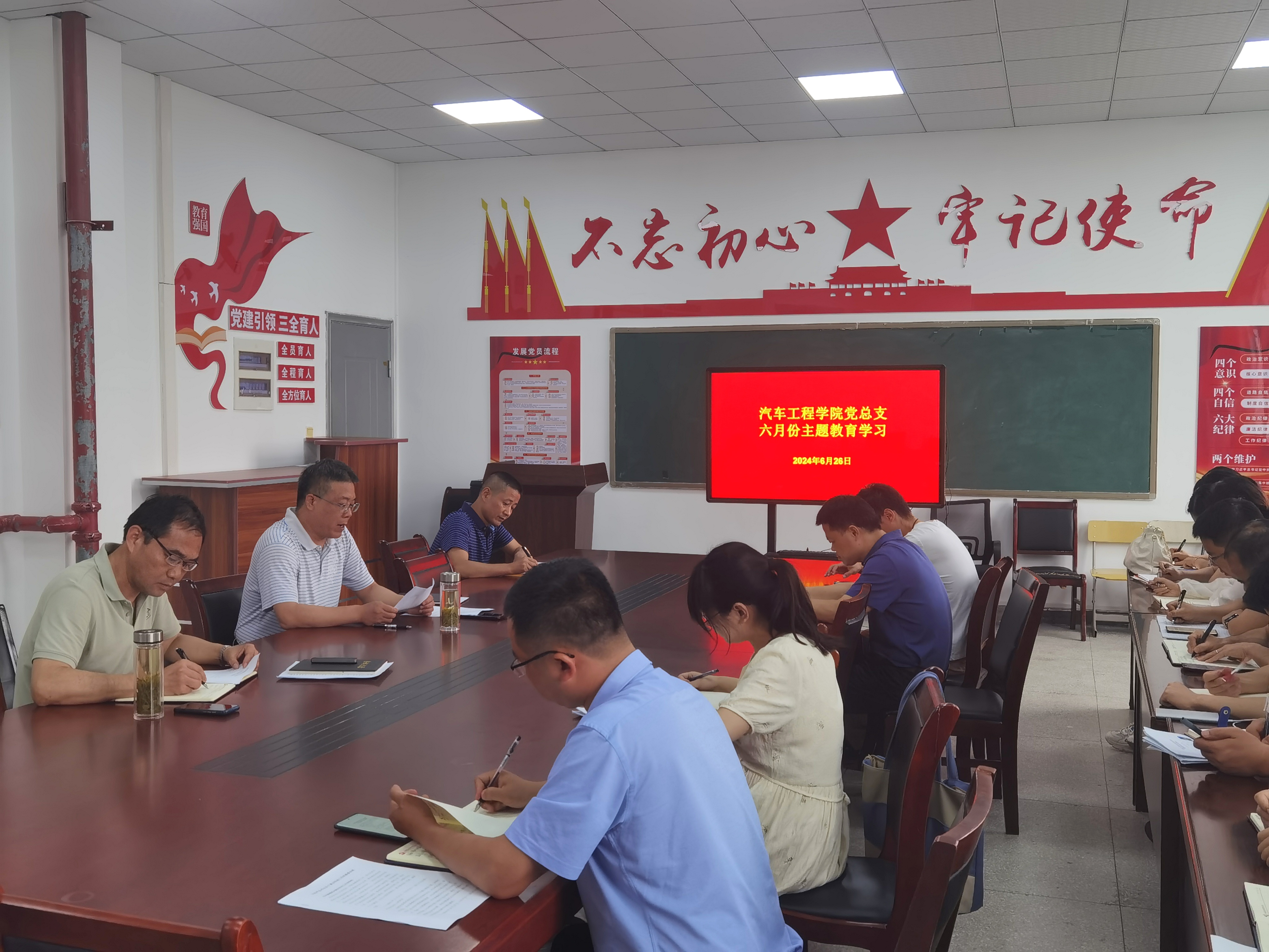 为深入学习宣传贯彻习近平新时代中国特色社会主义思想和党的二十大精神,扎实开展党纪学习教育,betway西汉姆联官网党总支于6月26日下午3:00在汽车楼405召开主题党日活动,会议由我院党总支副书记(主持工作)刘靖主持,全体党员参与学习。