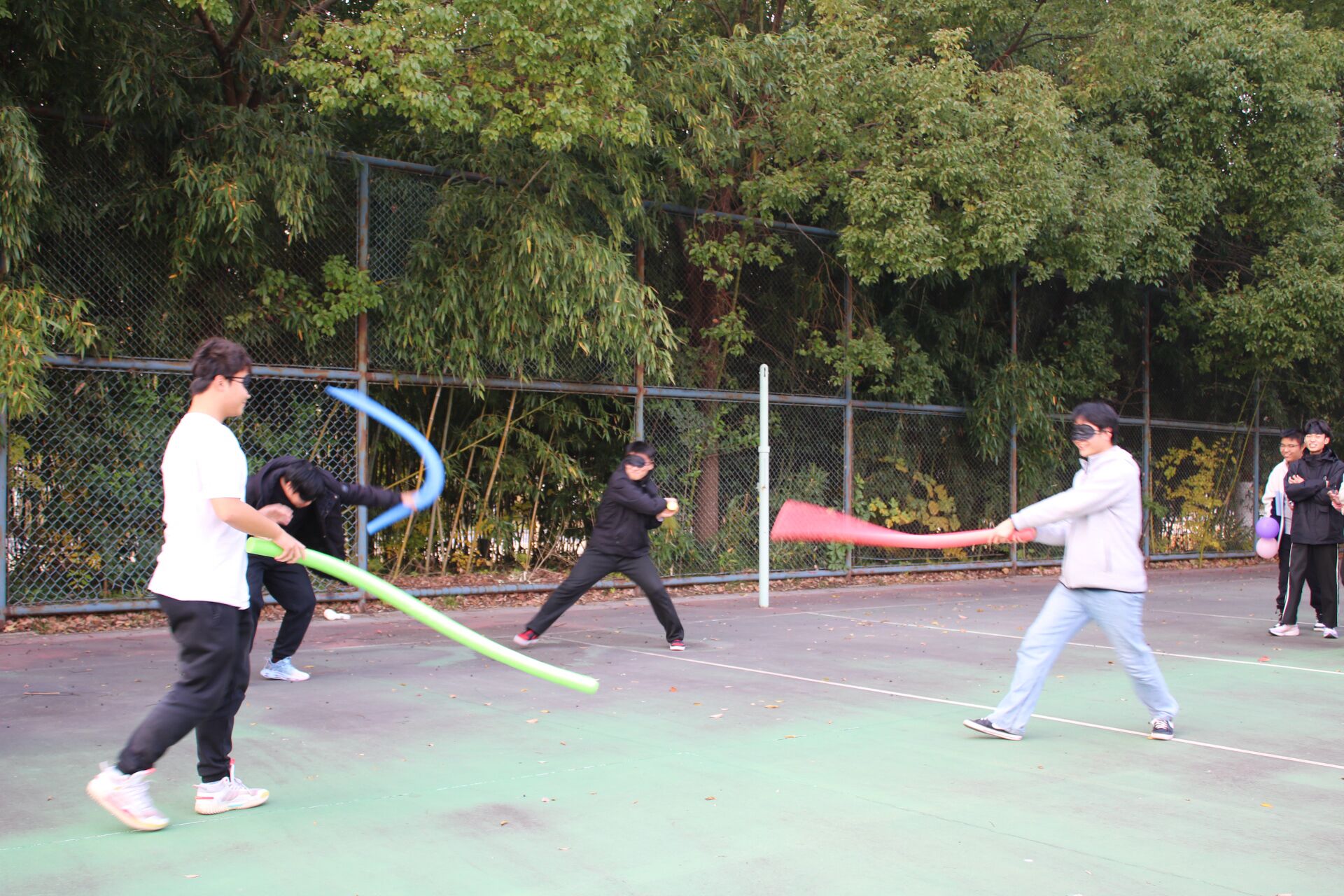 本次活动以团体小游戏为主,同学们先后进行了健身操套圈蒙眼互打”“无敌毛毛虫游戏。在王桂年老师带领下,同学们跳起节奏欢快的健身操,在这个过程中,同学们逐渐从疲惫的学习状态中解脱出来,感受到身体逐渐舒缓和放松;“无敌毛毛虫”游戏通过灵活穿梭、团队协作的方式,提升同学们的肢体协调能力,充分展现团队的默契配合;“蒙眼互打”游戏以声辨位用现场笑声不断,放松了同学的心情“套圈”游戏则考验同学们的平衡力大家互帮互助,拉近了彼此间的距离。